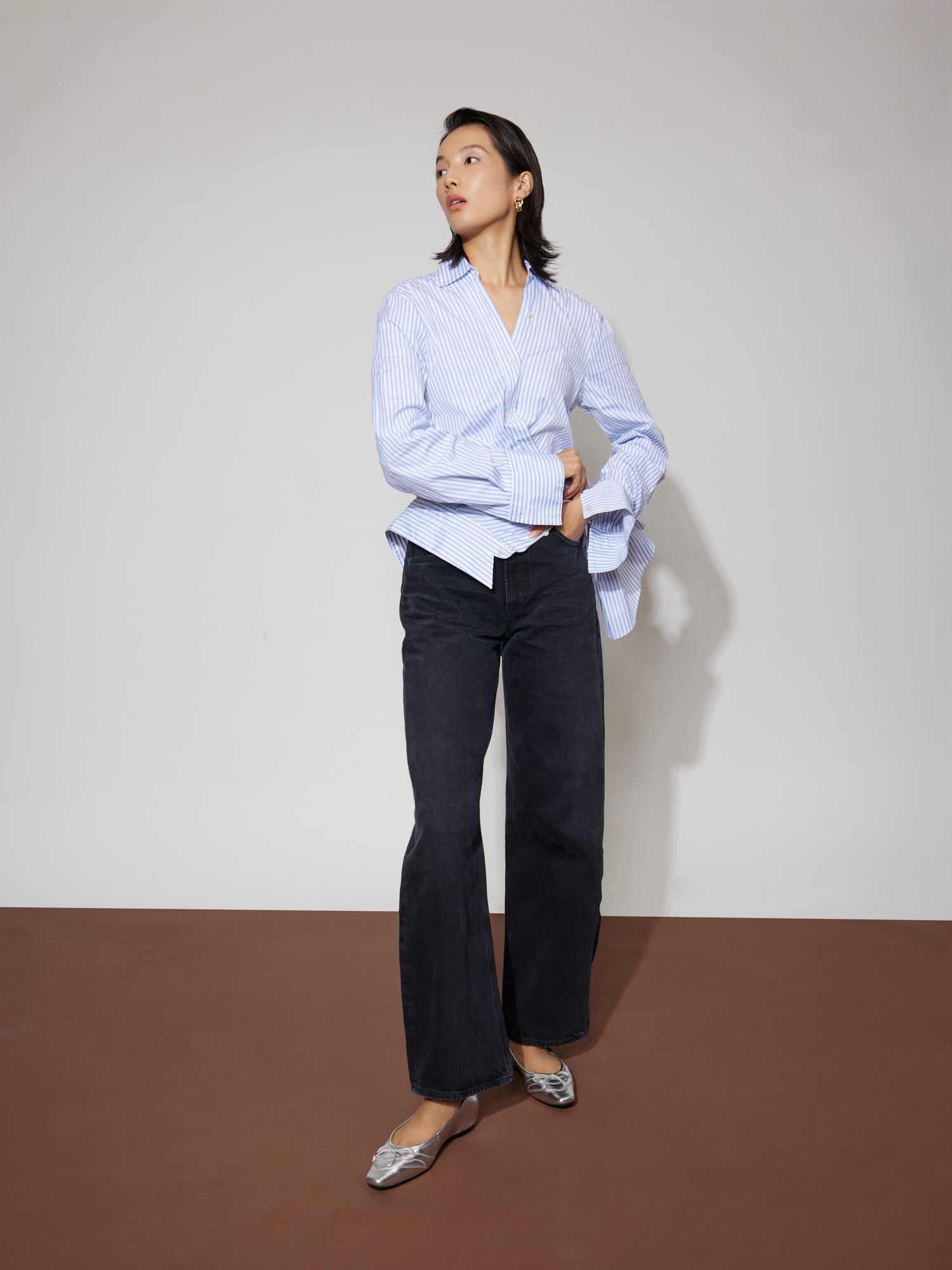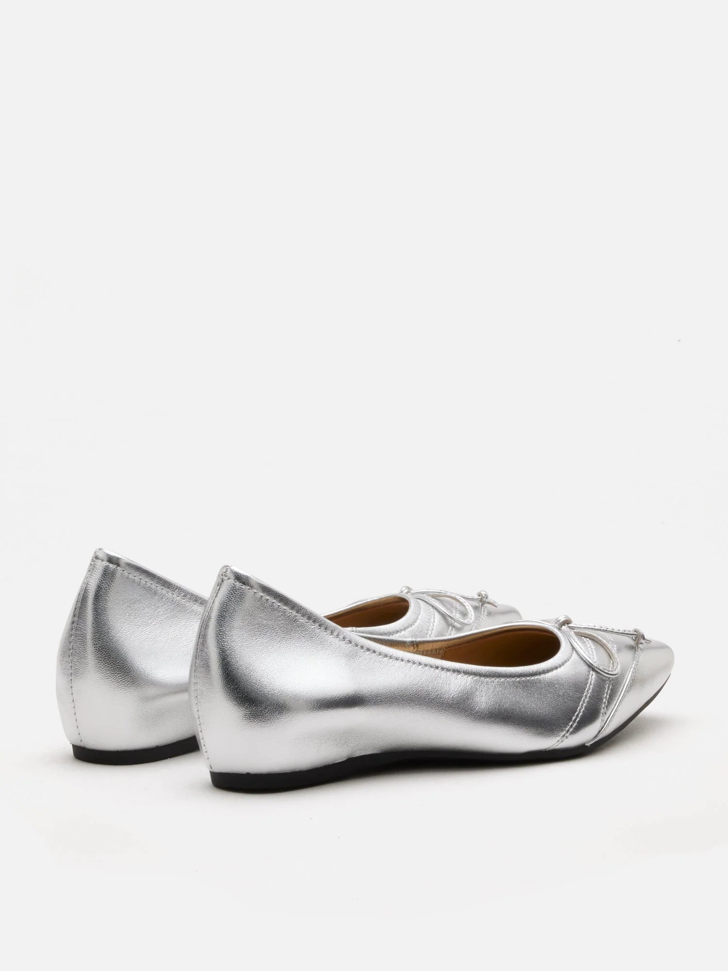 These classic leather flats have a shiny metallic finish in bronze and silver. Made from soft lambskin, they feature a front bow, a thick padded insole, and inserts for extra comfort and a slight lift.