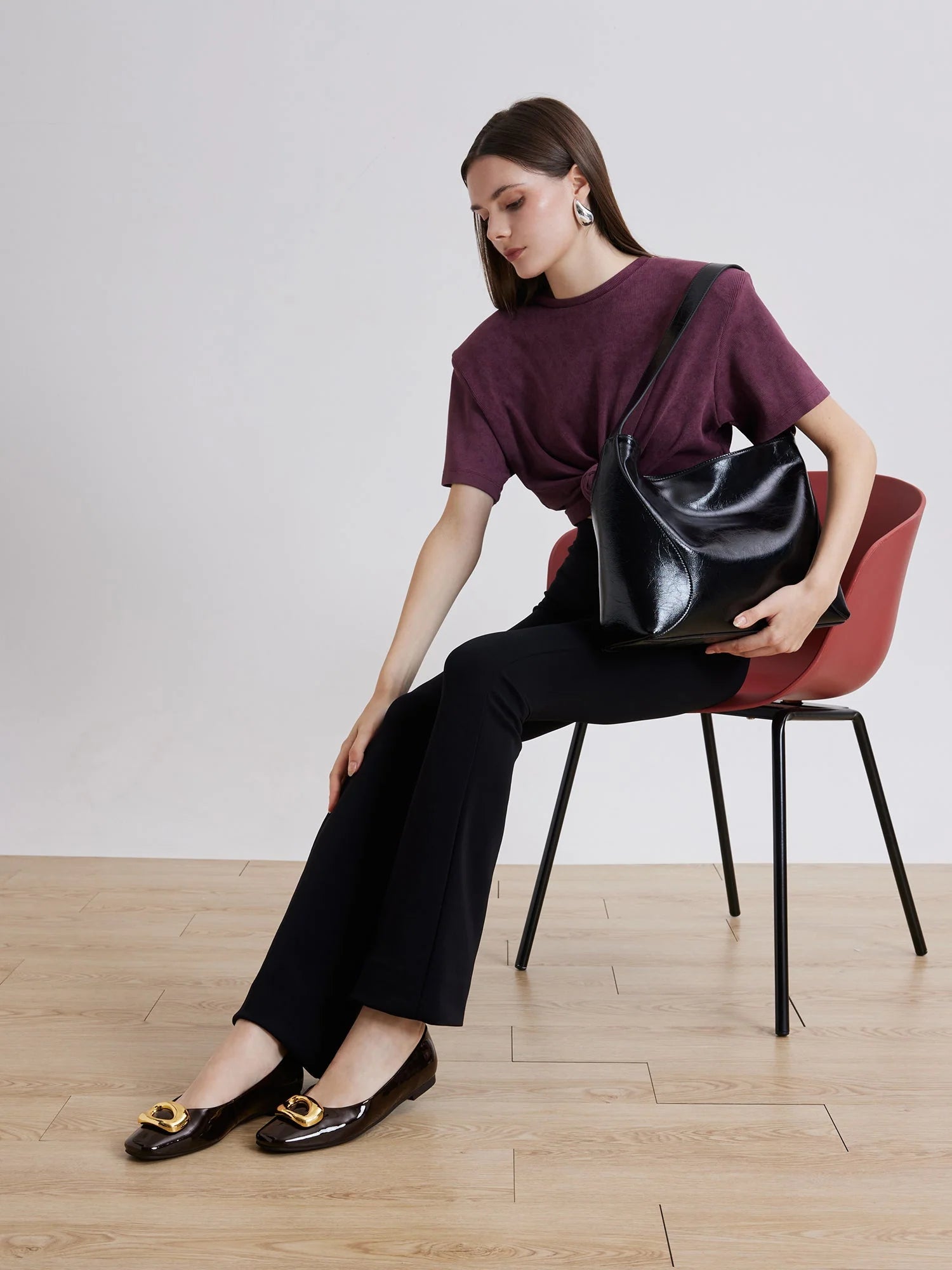 PRODUCT DESCRIPTION A bold gold-tone buckle atop the sculptural square toe lends classic modernity, while the thick, padded, and breathable insole with arch support delivers seamless comfort. Completed with a soft, flexible rubber outsole, these flats exemplify effortless grace for the discerning woman. DETAILS Material: Cowhide Patent Leather Lining: Lambskin...