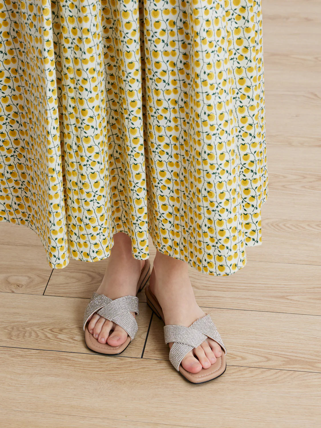 These captivating slides feature a unique twist design, meticulously adorned with a captivating array of crystal embellishments, ensuring an everlasting allure with every stride. The lambskin-lined insole and durable rubber outsole provide all-day comfort and practicality, making Xaviera the quintessential choice for modern-day sophistication.