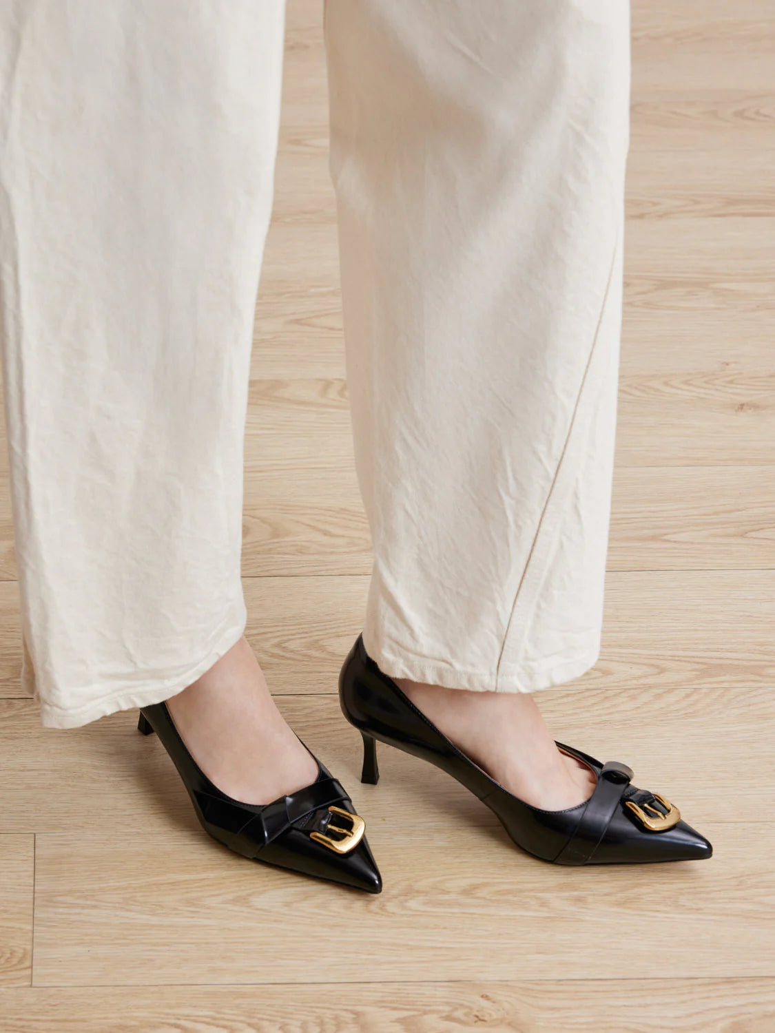 Luca delivers a perfect fusion of form, function, and effortless grace, elevated by a distinctive, polished buckle detail that lends an air of perennial chic. The modest heel provides a comfortable lift, ensuring effortless grace throughout your day. Internally, a luxurious lambskin lining pairs with a thoughtfully integrated padded cushion for upper forefoot and toes support, promising uncompromising comfort.